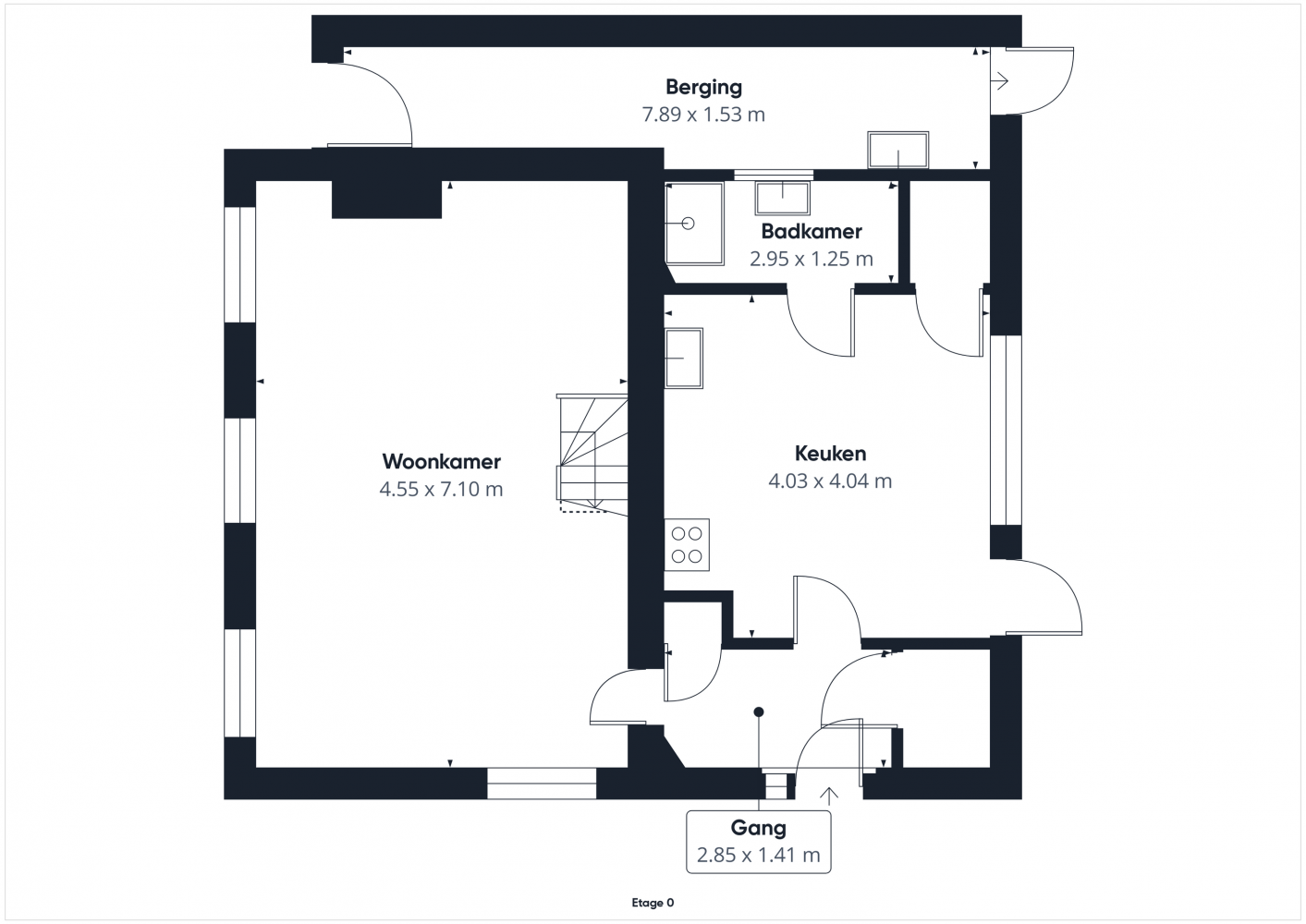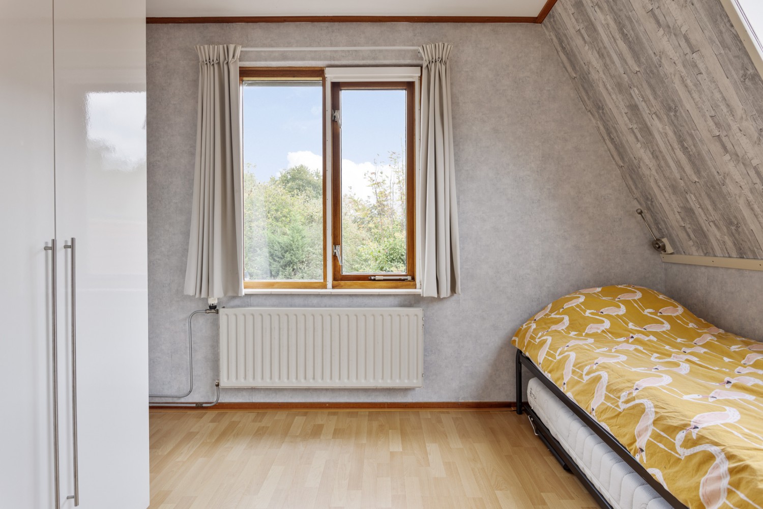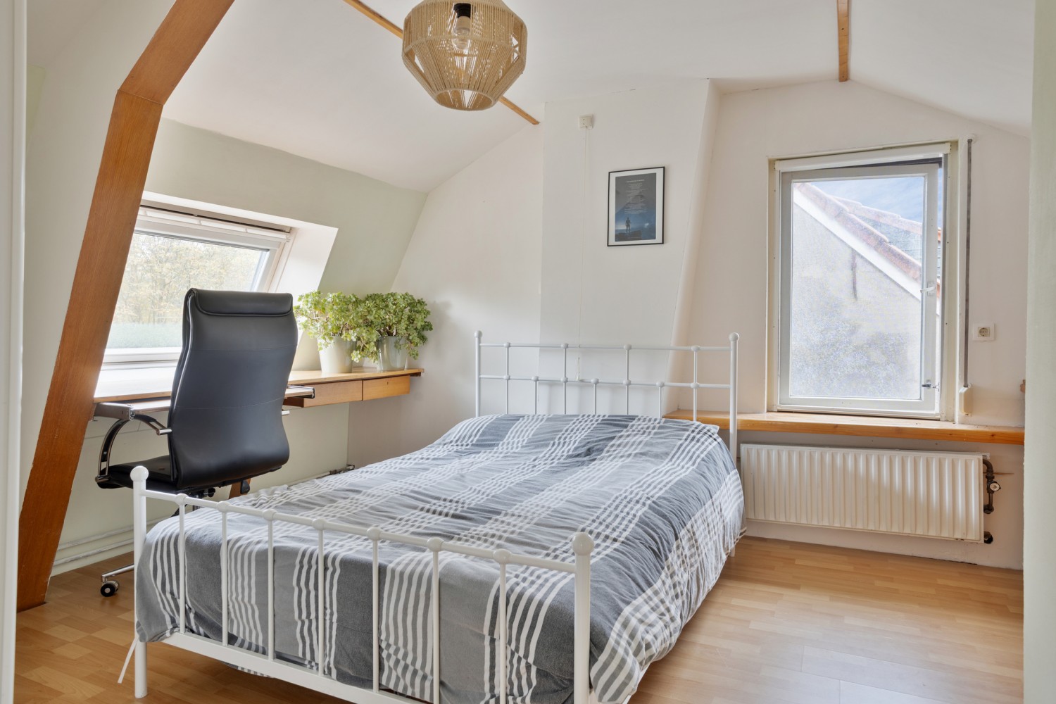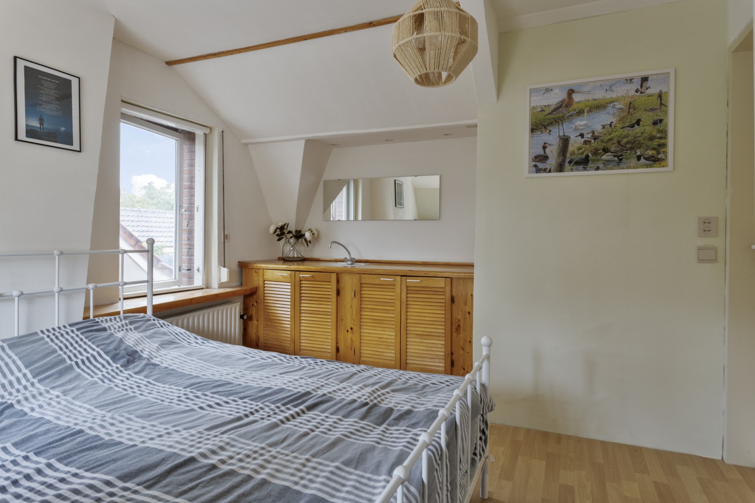 Bij binnenkomst tref je de hal met meterkast, toilet met fonteintje en toegang tot de keuken en woonkamer. De lichte woonkamer met gezellige haard nodigt uit om te ontspannen en geeft toegang tot de trap naar de verdieping. De woonkeuken is van alle gemakken voorzien met inbouwapparatuur, inclusief Quooker, en grote raampartijen die prachtig uitzicht geven op de tuin. Vanuit de keuken kom je bij de badkamer, uitgerust met douche, wastafel en witgoedaansluiting, en bij de provisiekast voor extra opbergruimte.