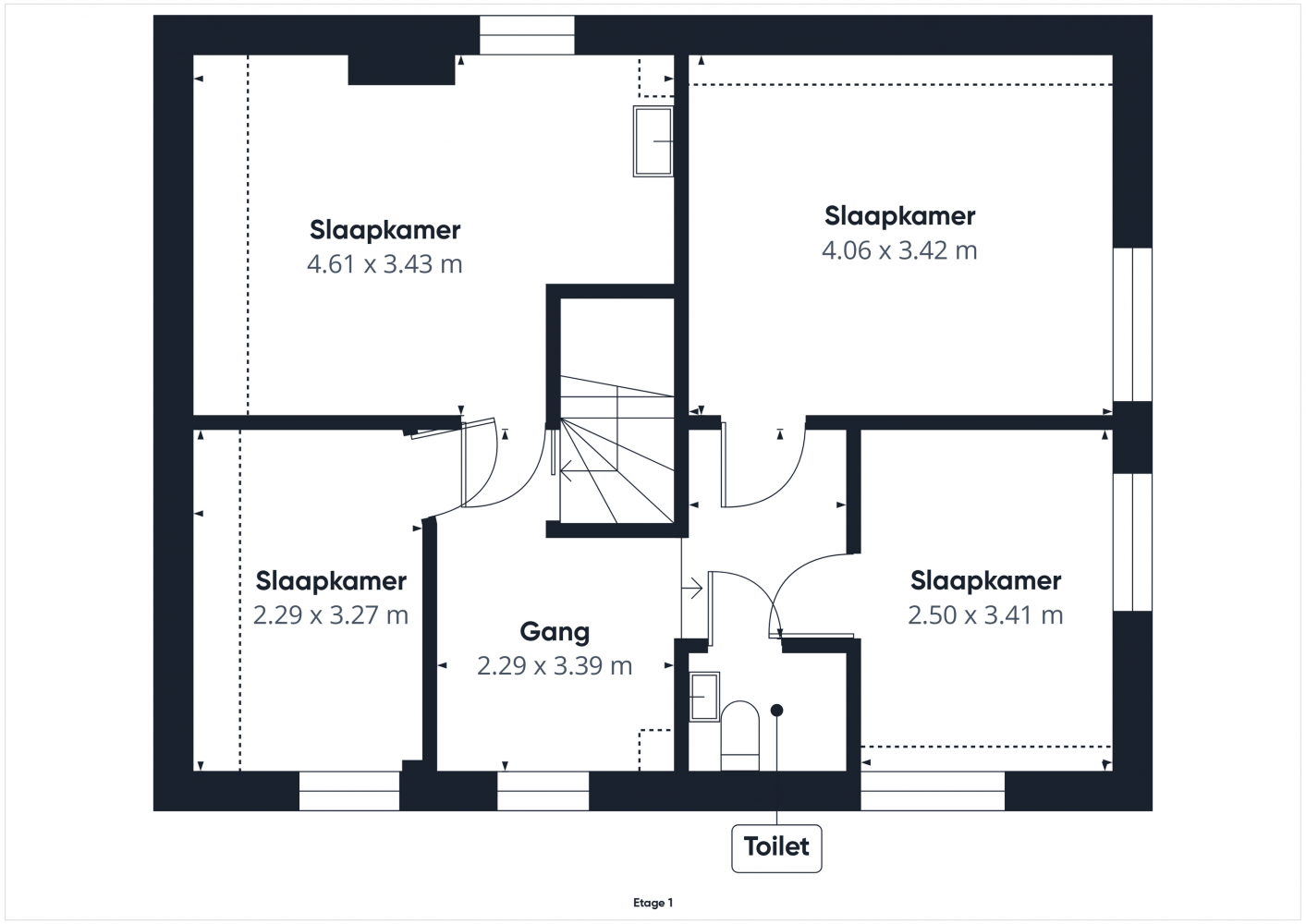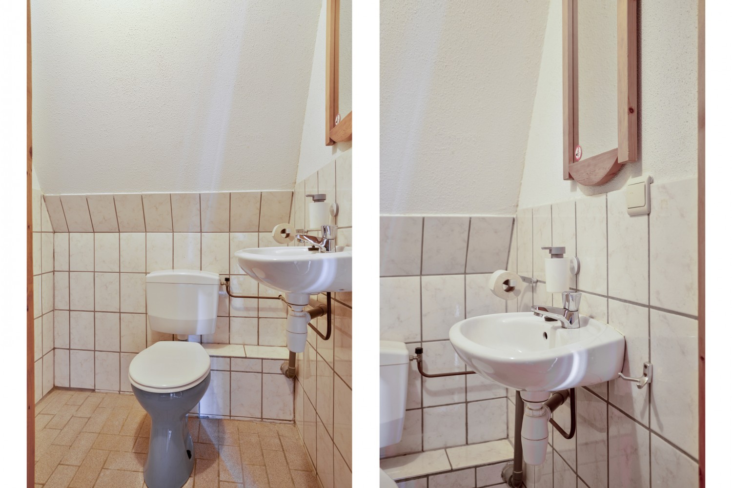 Op de eerste verdieping vind je een overloop die toegang biedt tot vier slaapkamers en een separaat toilet met fonteintje. E