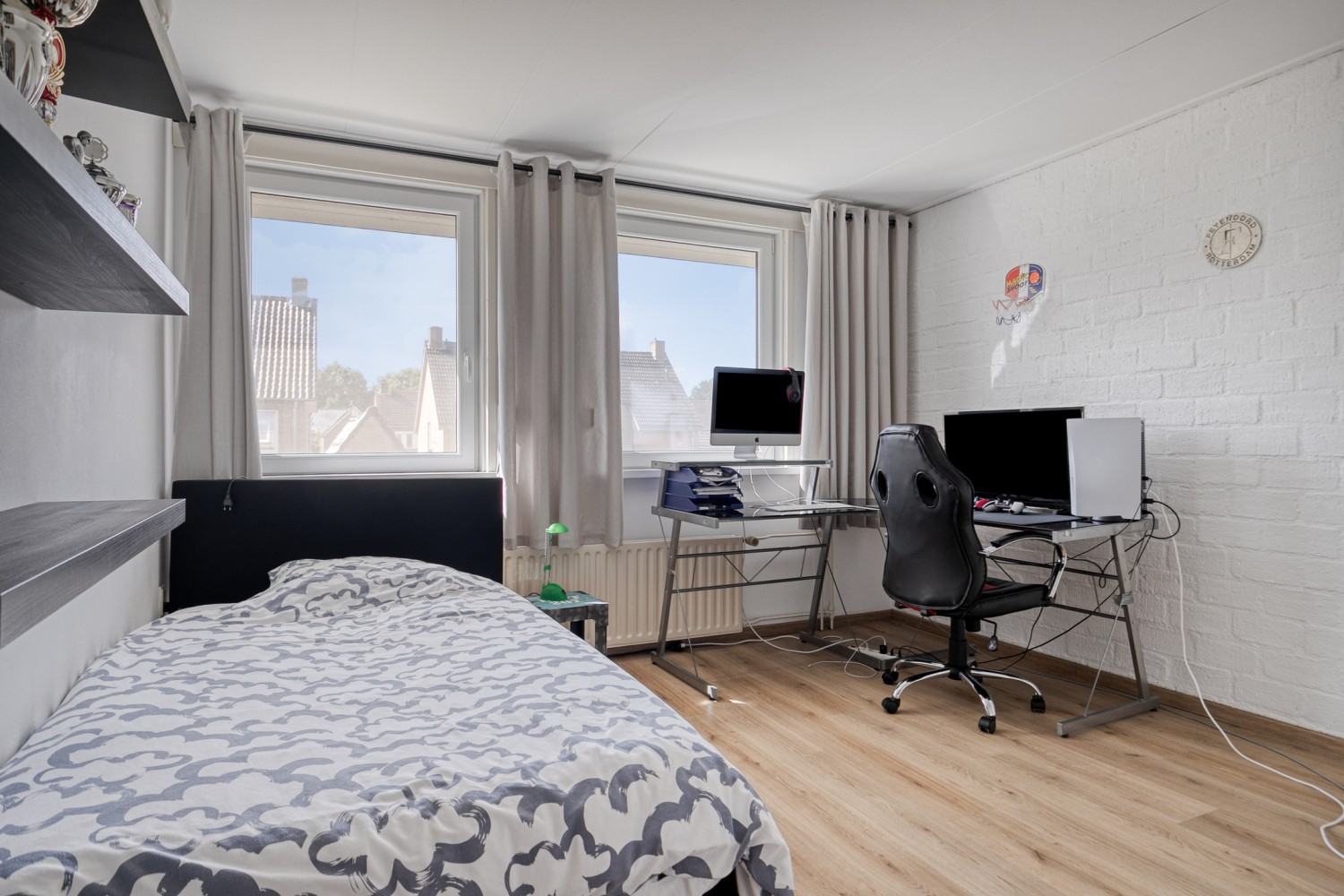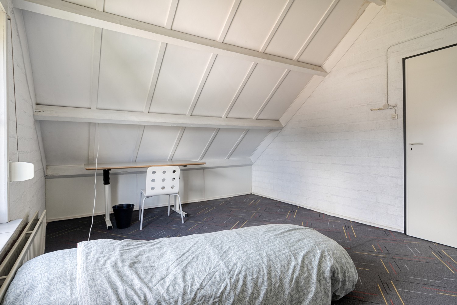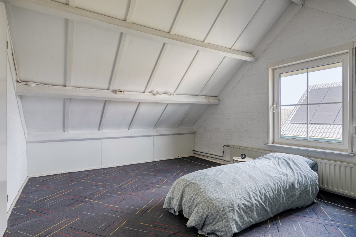 De tweede verdieping is bereikbaar middels een vaste trap. Vanaf de overloop heb je toegang tot de berging met cv-opstelling en een ruime 4e slaapkamer. Daarnaast is er veel bergruimte achter de knieschotten. Deze verdieping maakt het huis ideaal voor grotere gezinnen of voor wie thuis een extra werk- of hobbyruimte nodig heeft.