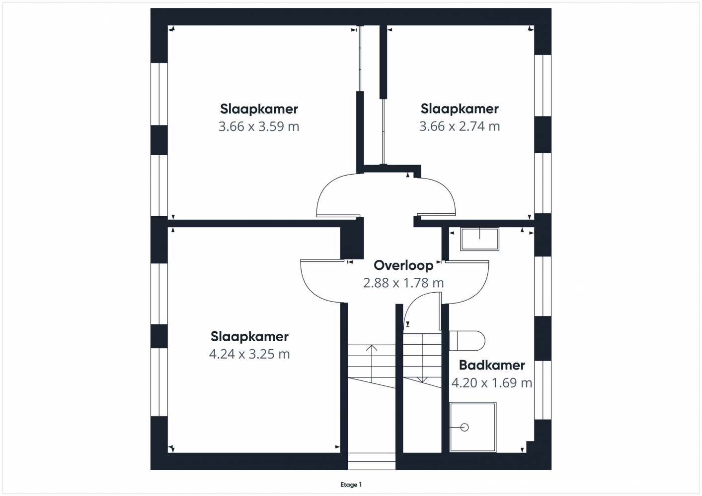 Vanaf de overloop heb je toegang tot 3 comfortabele slaapkamers en de badkamer. 2 Slaapkamers zijn voorzien van handige inbouwkasten. De badkamer is ingericht met een douchecabine, wastafel met meubel en bergkast, toilet (sanibroyeur) en een designradiator. Dankzij de vloerverwarming is het hier altijd behaaglijk.