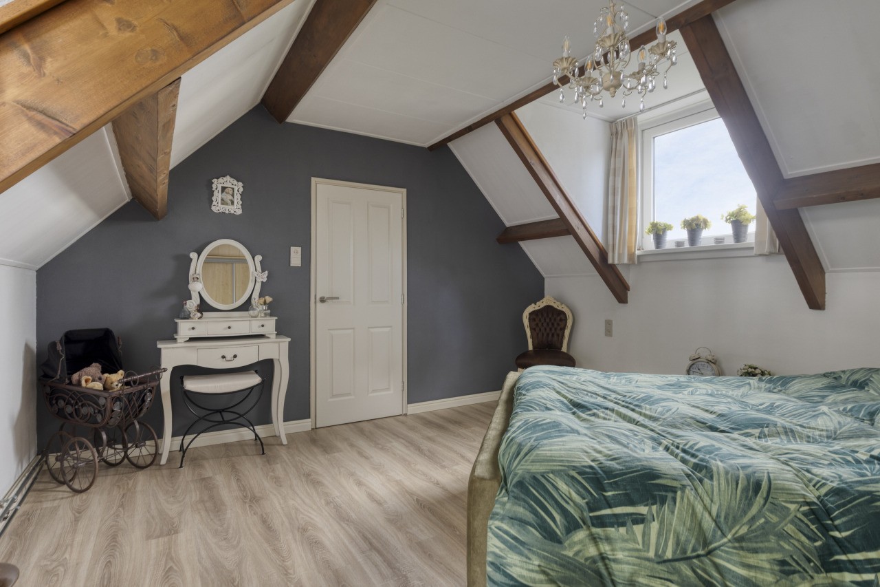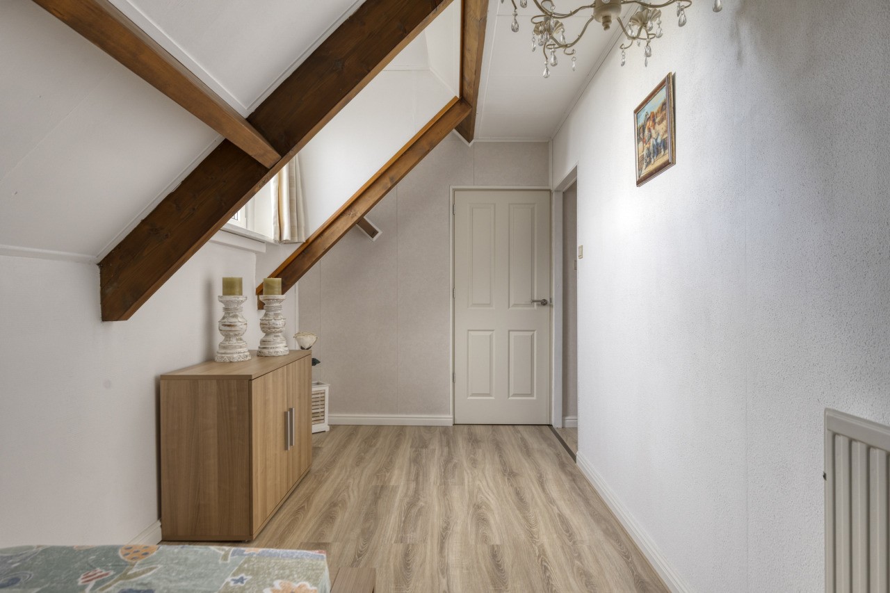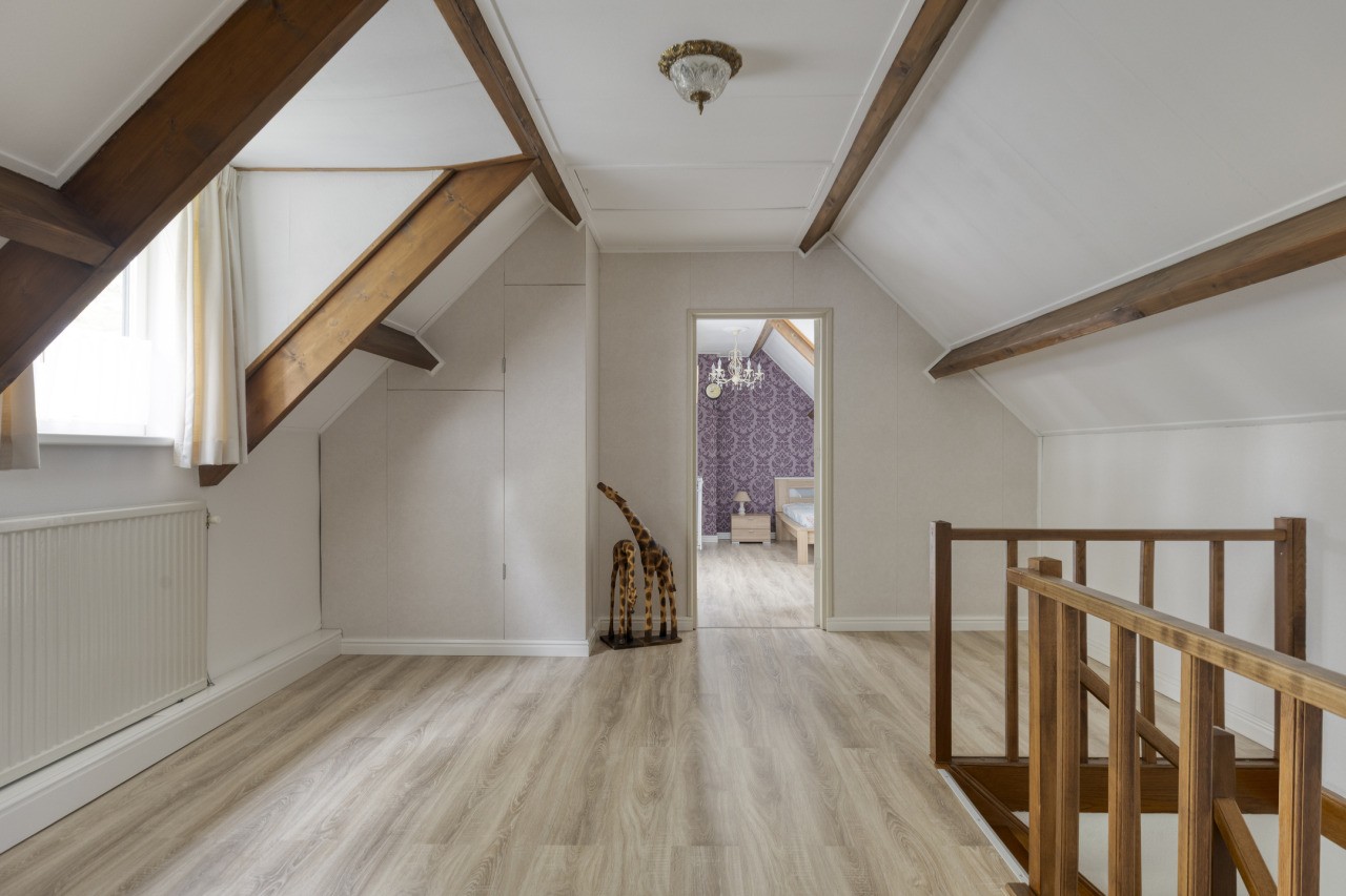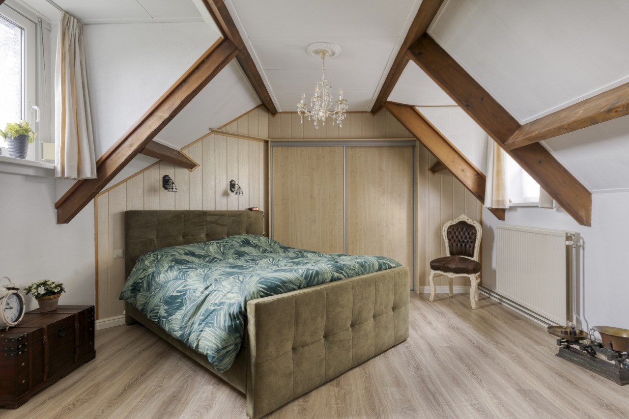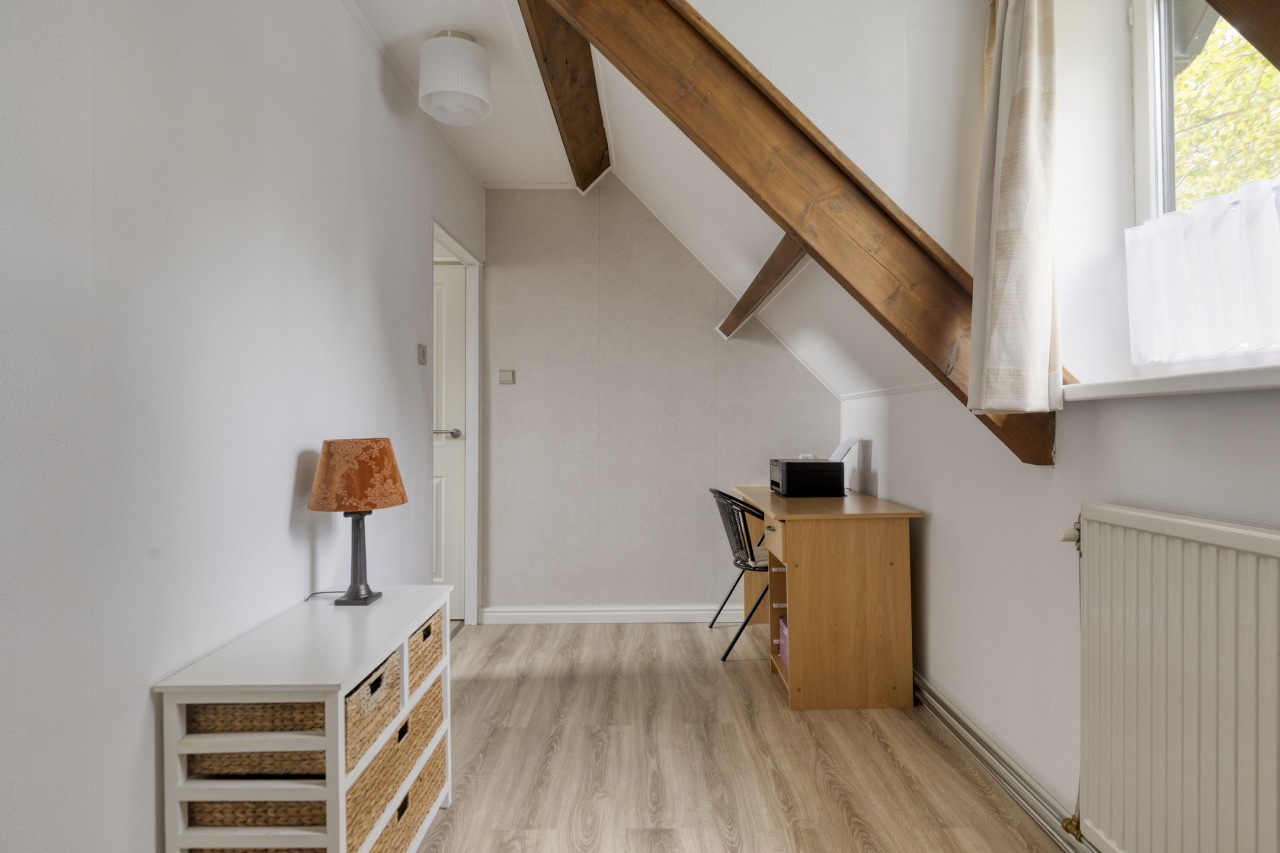Op de eerste verdieping kom je via de overloop bij drie slaapkamers, verdeeld over de linker- en rechterzijde van de woning. De grootste slaapkamer bevindt zich aan de linkerkant en biedt volop ruimte voor een groot bed en een royale kastopstelling. De twee slaapkamers aan de rechterzijde zijn praktisch van formaat en goed te gebruiken als kinderkamer, logeerkamer of werkkamer. Dankzij de ligging aan weerszijden van de woning hebben de kamers een prettige indeling en voldoende lichtinval, wat bijdraagt aan een fijne, rustige sfeer op deze verdieping.