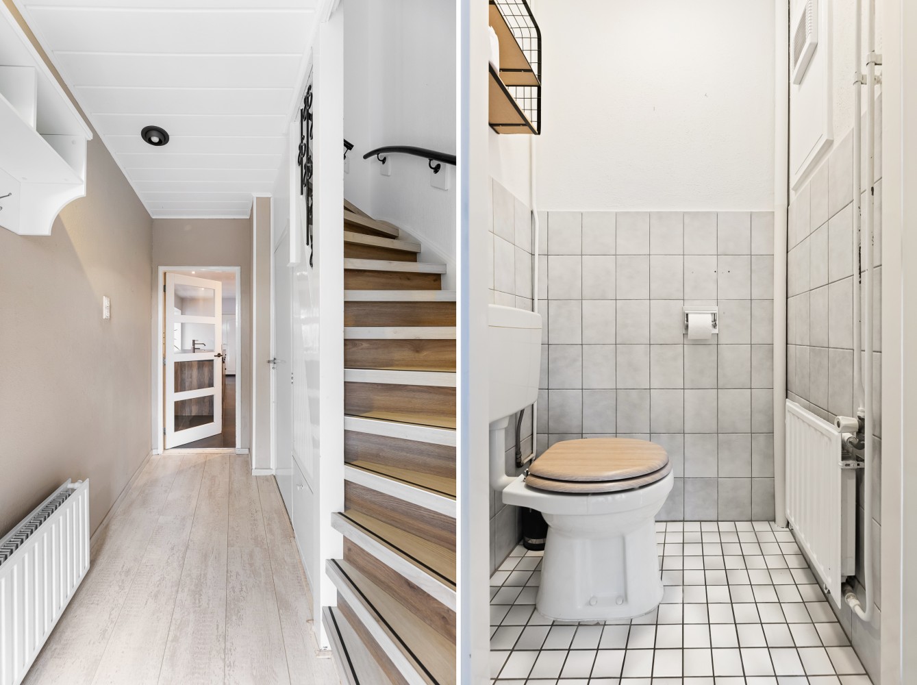 Bij binnenkomst in de hal tref je het toilet, de meterkast en de trap naar de eerste verdieping. De woonkamer loopt naadloos over in de lichte serre, die een prachtig uitzicht biedt op de tuin. De open keuken vormt het hart van het huis en is voorzien van moderne inbouwapparatuur en een kook-/spoeleiland, ideaal voor koken en ontspannen met het gezin of vrienden. Vanuit de keuken bereik je de bijkeuken met cv-opstelling, en aansluitend bevindt zich de badkamer met ligbad en wastafelmeubel.