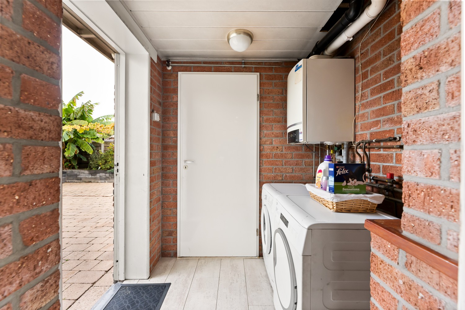 De tuin is een heerlijke plek om te genieten. Een deel is voorzien van sierbestrating, maar er is ook volop groen, waardoor het geheel een prettige, natuurlijke sfeer heeft. De overkapping nodigt uit tot lange zomeravonden en gezellige momenten buiten, terwijl de ligging veel privacy biedt. De garage met elektrische poort maakt het plaatje compleet en biedt praktische bergruimte.