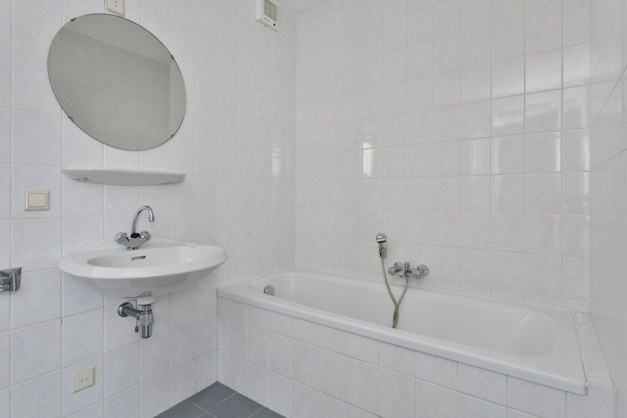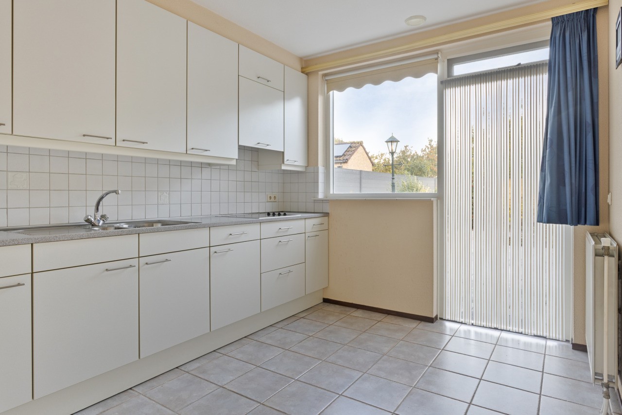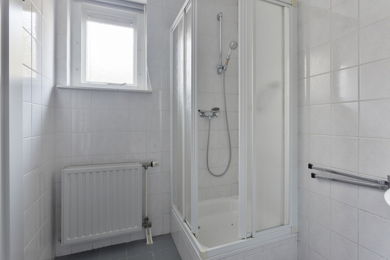 Bij binnenkomst via de hal valt meteen de praktische indeling op. Het toilet met fonteintje is handig geplaatst en vanuit de hal bereik je de woonkamer en de slaapkamer op de begane grond. De L-vormige woonkamer is licht en ruim en biedt een prettige leefruimte. Aansluitend vind je de halfopen keuken, met een ruime bergkast en toegang tot de achtertuin. De slaapkamer op de begane grond geeft directe toegang tot de badkamer, die voorzien is van een douche, ligbad en wastafel. Zo is wonen op de begane grond zowel praktisch als comfortabel.