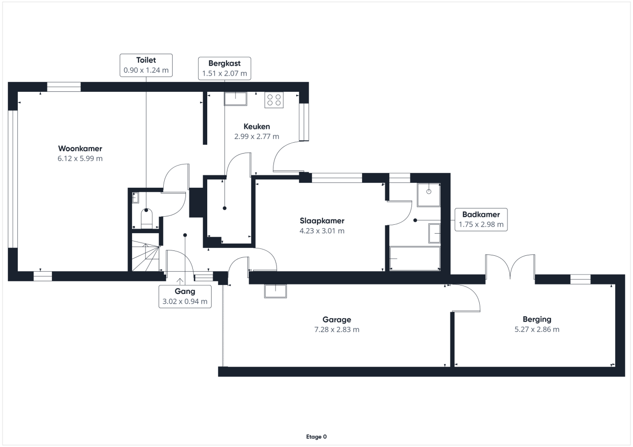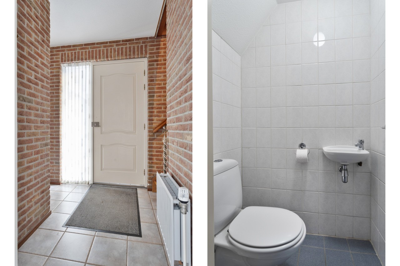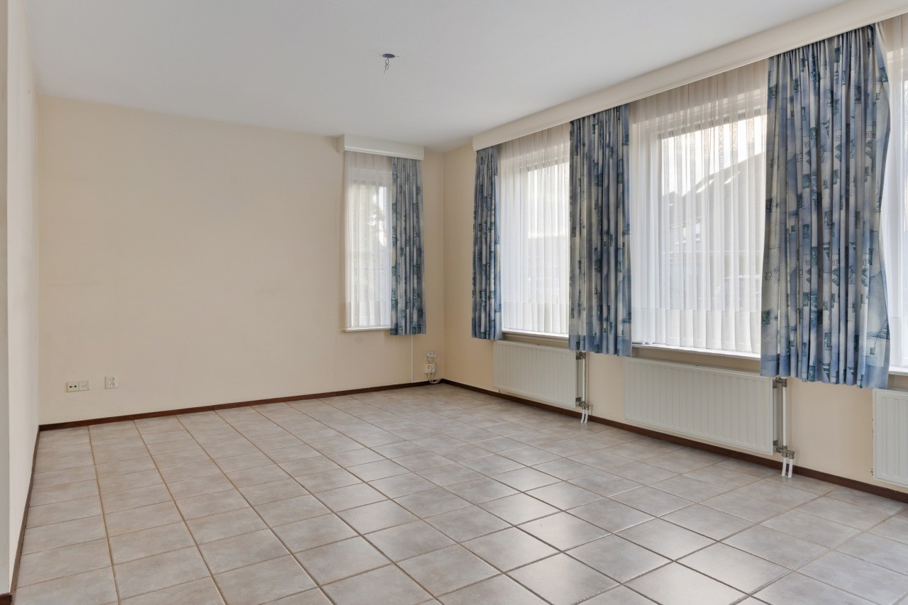 Bij binnenkomst via de hal valt meteen de praktische indeling op. Het toilet met fonteintje is handig geplaatst en vanuit de hal bereik je de woonkamer en de slaapkamer op de begane grond. De L-vormige woonkamer is licht en ruim en biedt een prettige leefruimte. Aansluitend vind je de halfopen keuken, met een ruime bergkast en toegang tot de achtertuin. De slaapkamer op de begane grond geeft directe toegang tot de badkamer, die voorzien is van een douche, ligbad en wastafel. Zo is wonen op de begane grond zowel praktisch als comfortabel.