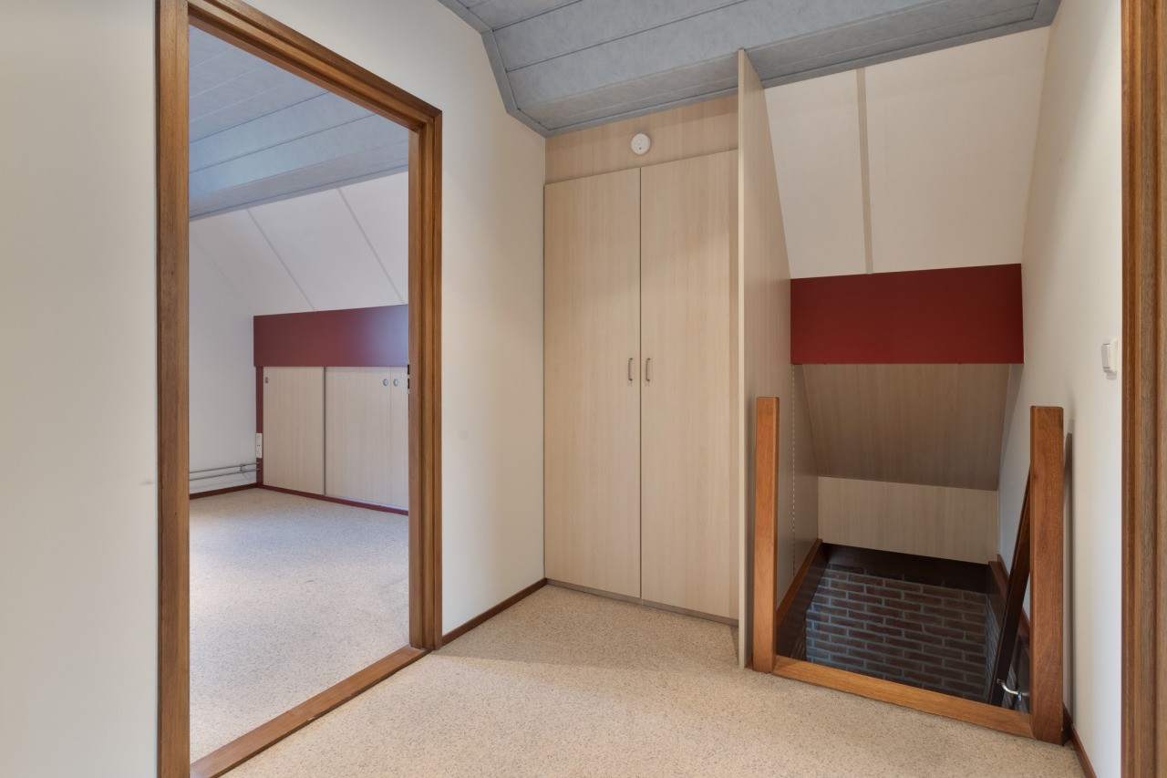 Op de eerste verdieping vind je een overloop met vaste kast en twee ruime slaapkamers, elk voorzien van vaste kasten. Zo is er voldoende opbergruimte en privacy voor iedereen. De indeling maakt de verdieping overzichtelijk en licht.