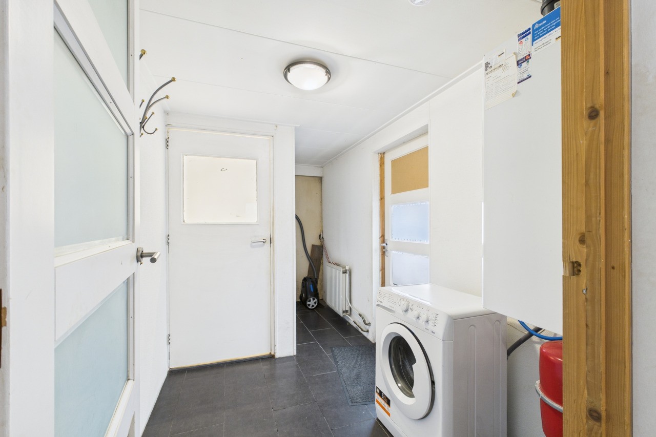 Bij binnenkomst kom je in de hal met trapopgang naar de verdieping en toegang tot de keuken. De halfopen keuken is voorzien van inbouwapparatuur en staat in verbinding met de lichte woonkamer, waar de zithoek aan de voorzijde en de eethoek aan de achterzijde zorgen voor een prettige indeling. In het midden van de kamer zorgt een sfeervolle schouw voor een warme uitstraling. Achter de keuken bevindt zich de bijkeuken met witgoedaansluiting, cv-opstelling en toegang tot het toilet, de aanbouw en de berging. De berging is inpandig bereikbaar en voorzien van elektra en water ? praktisch voor fietsen of extra opslag.