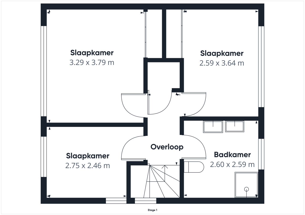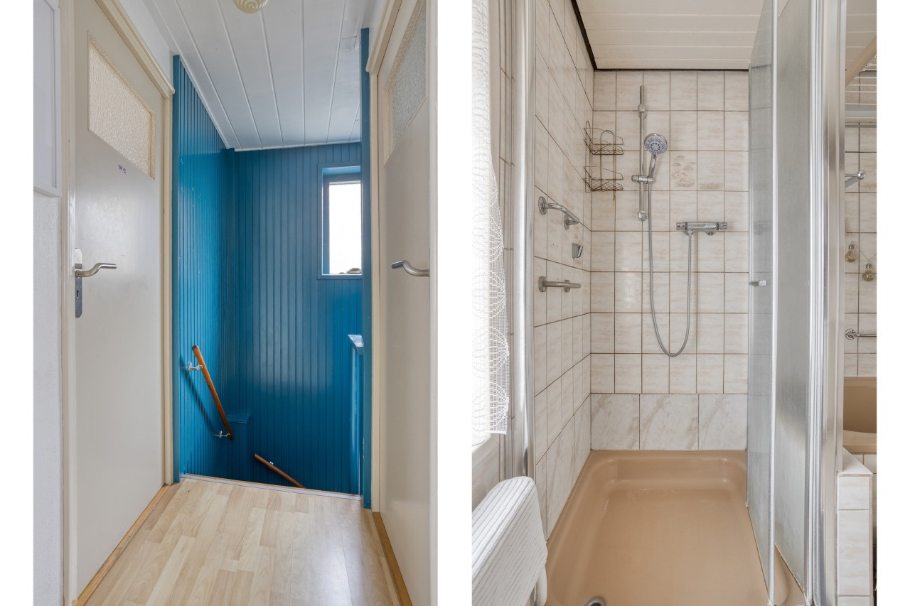 Op de eerste verdieping vind je drie slaapkamers, waarvan twee met een vaste kast. De badkamer is compleet met ligbad, douche, toilet en dubbele wastafel met meubel. Daarnaast is er een aparte wasruimte aanwezig, waardoor alles netjes georganiseerd kan blijven.