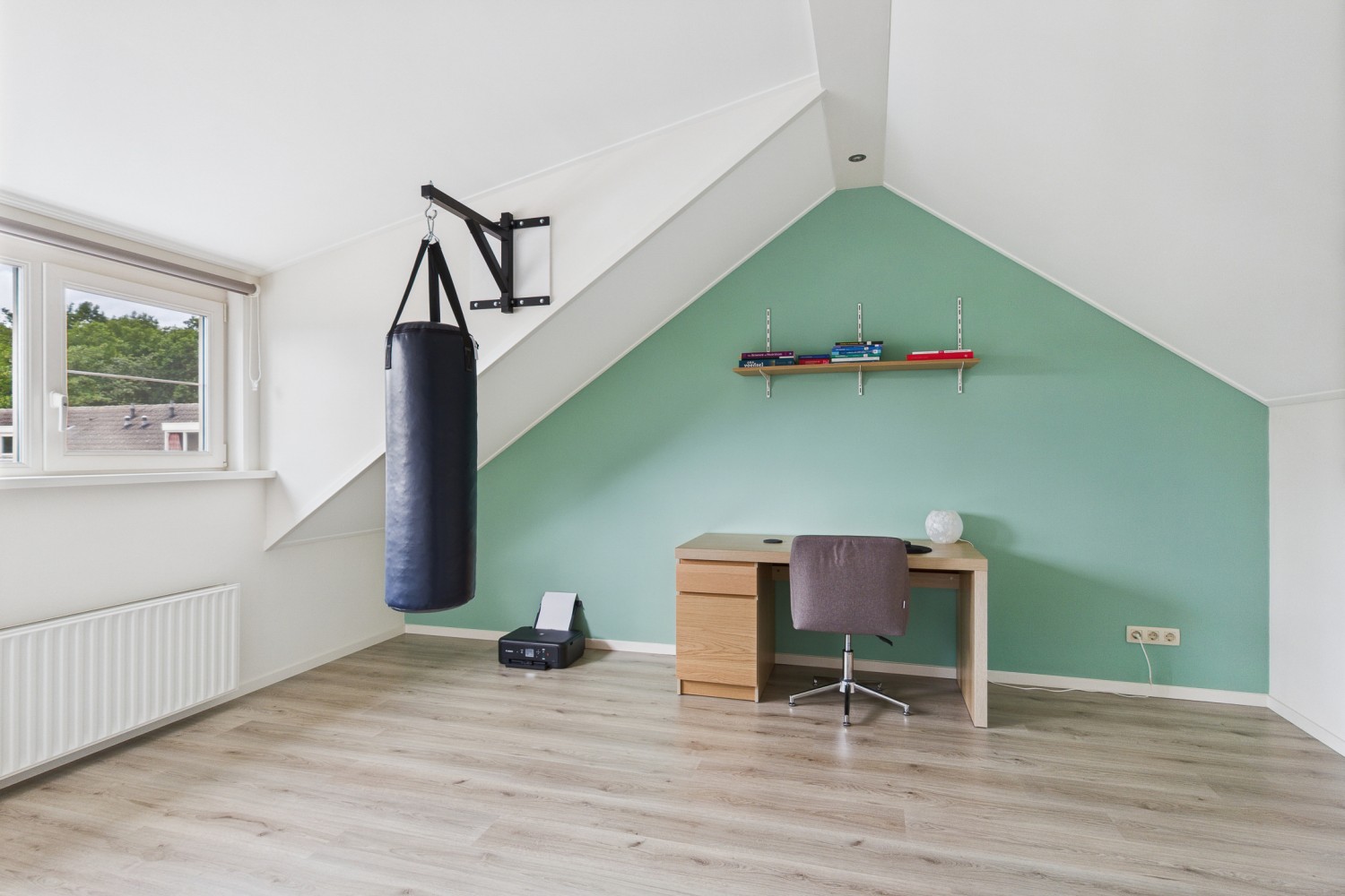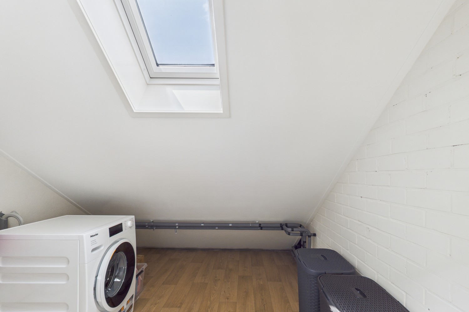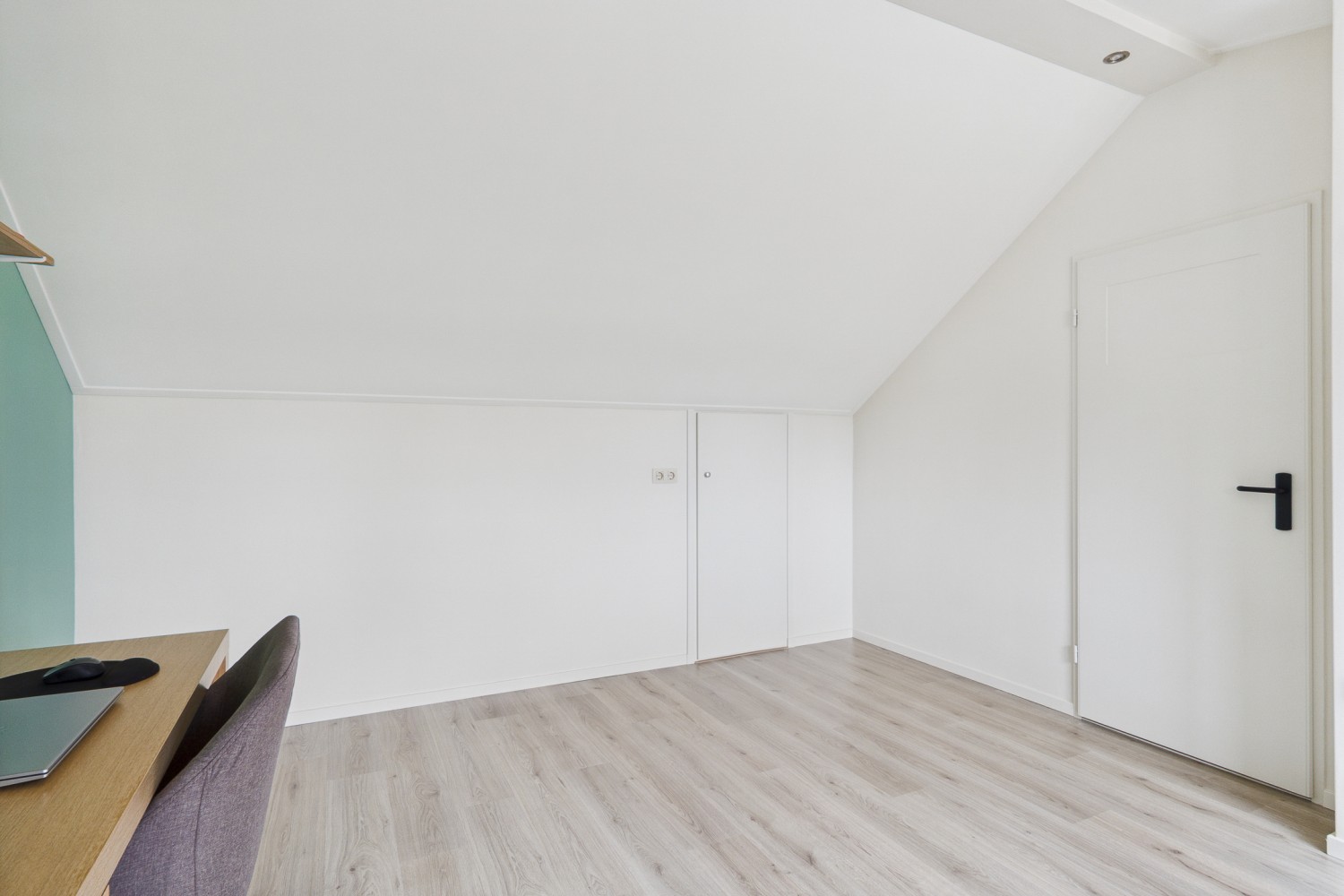 De tweede verdieping verrast met een ruime vierde slaapkamer, die dankzij de dakkapel heerlijk licht en ruimtelijk is. Achter de knieschotten is handige bergruimte gecre