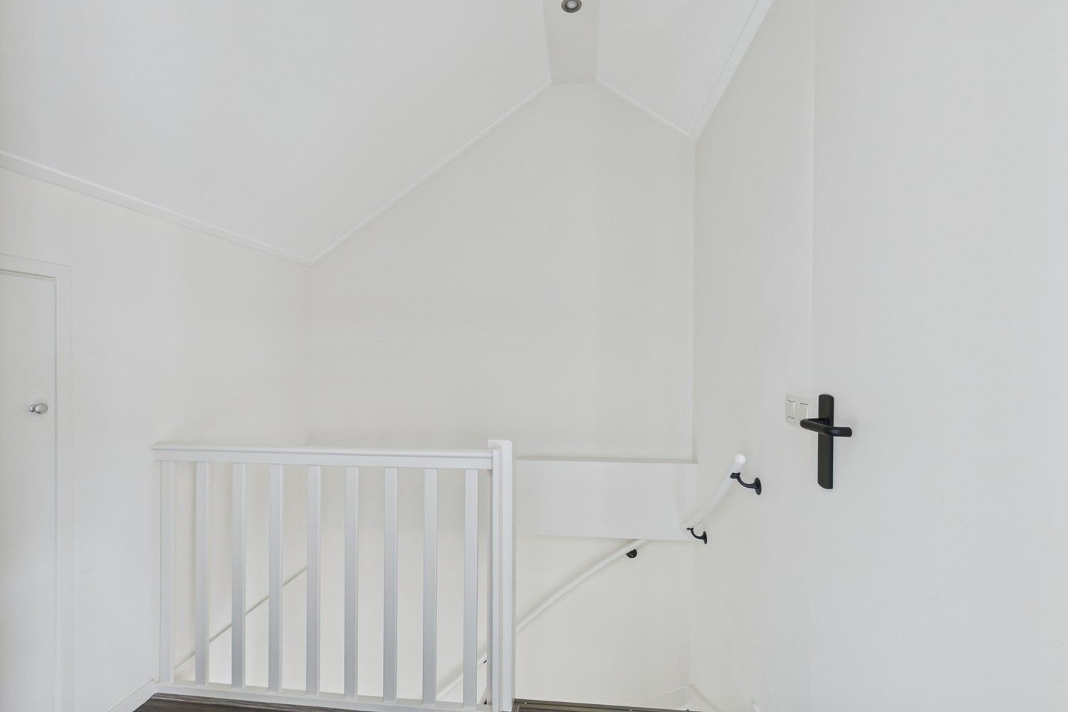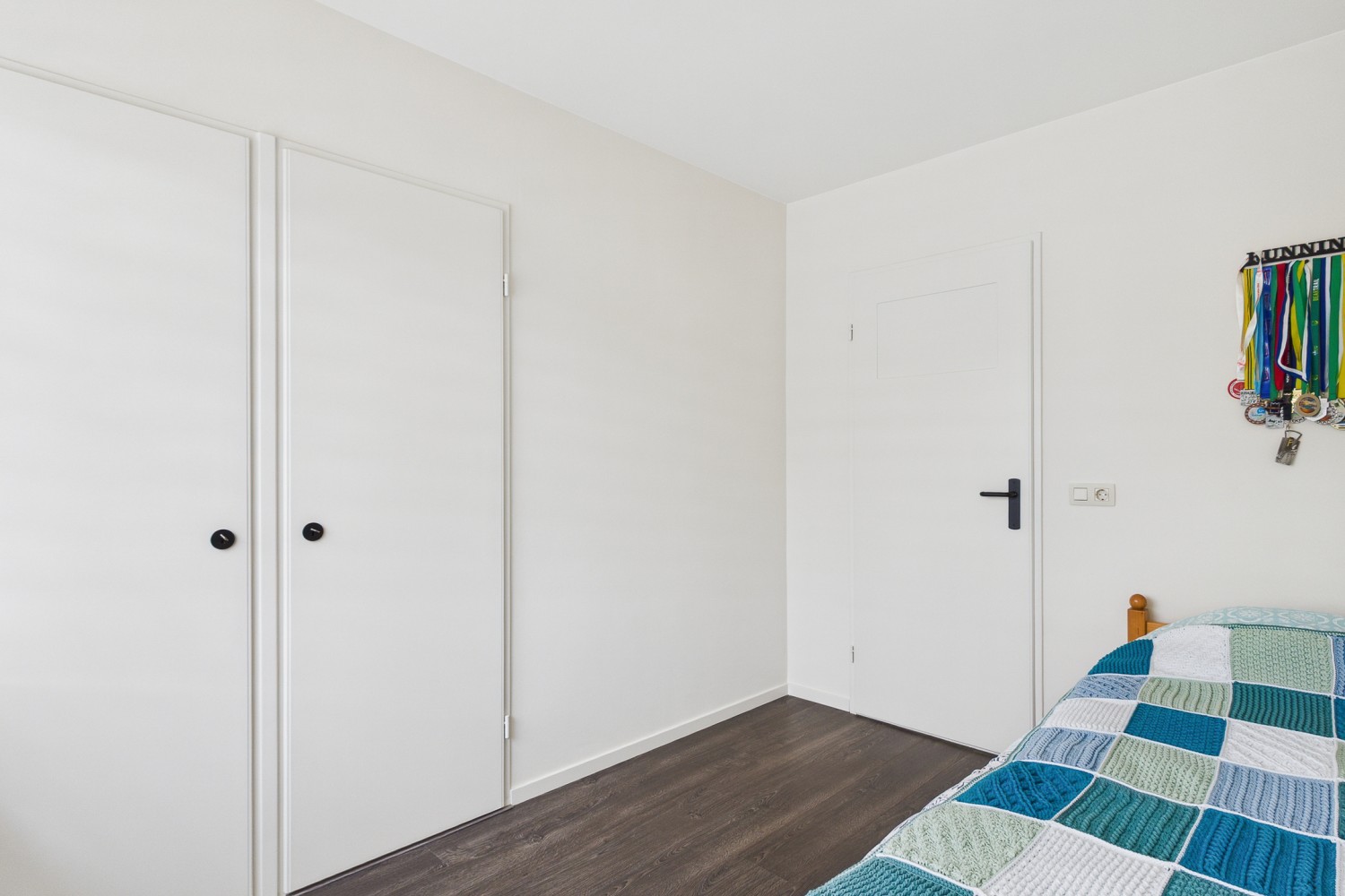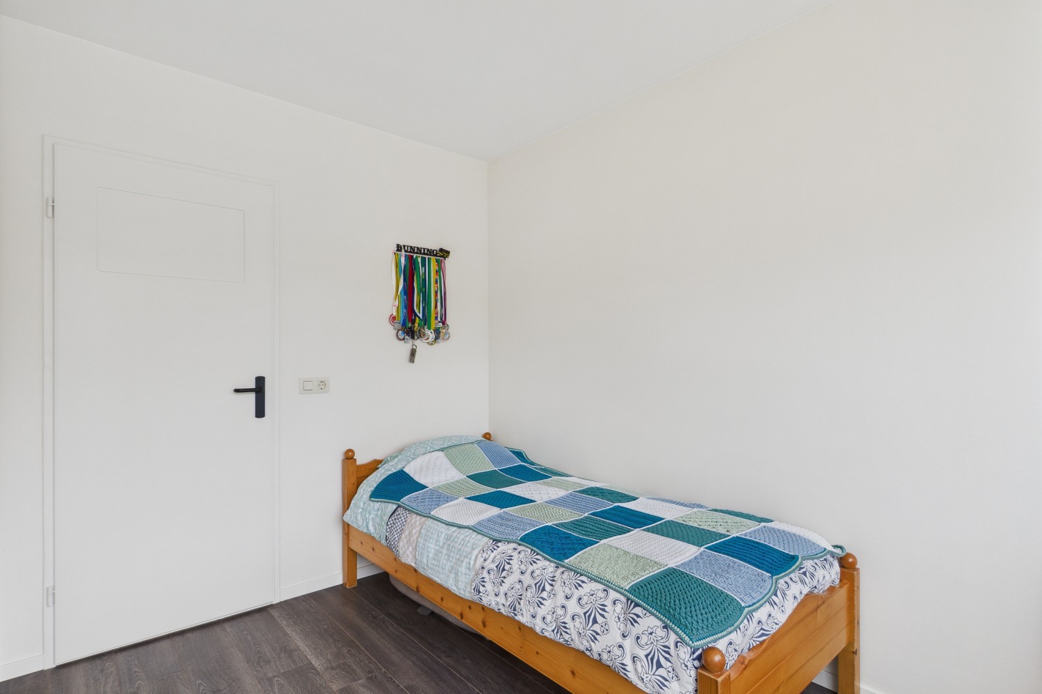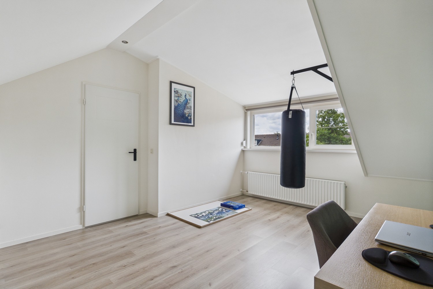 De tweede verdieping verrast met een ruime vierde slaapkamer, die dankzij de dakkapel heerlijk licht en ruimtelijk is. Achter de knieschotten is handige bergruimte gecre