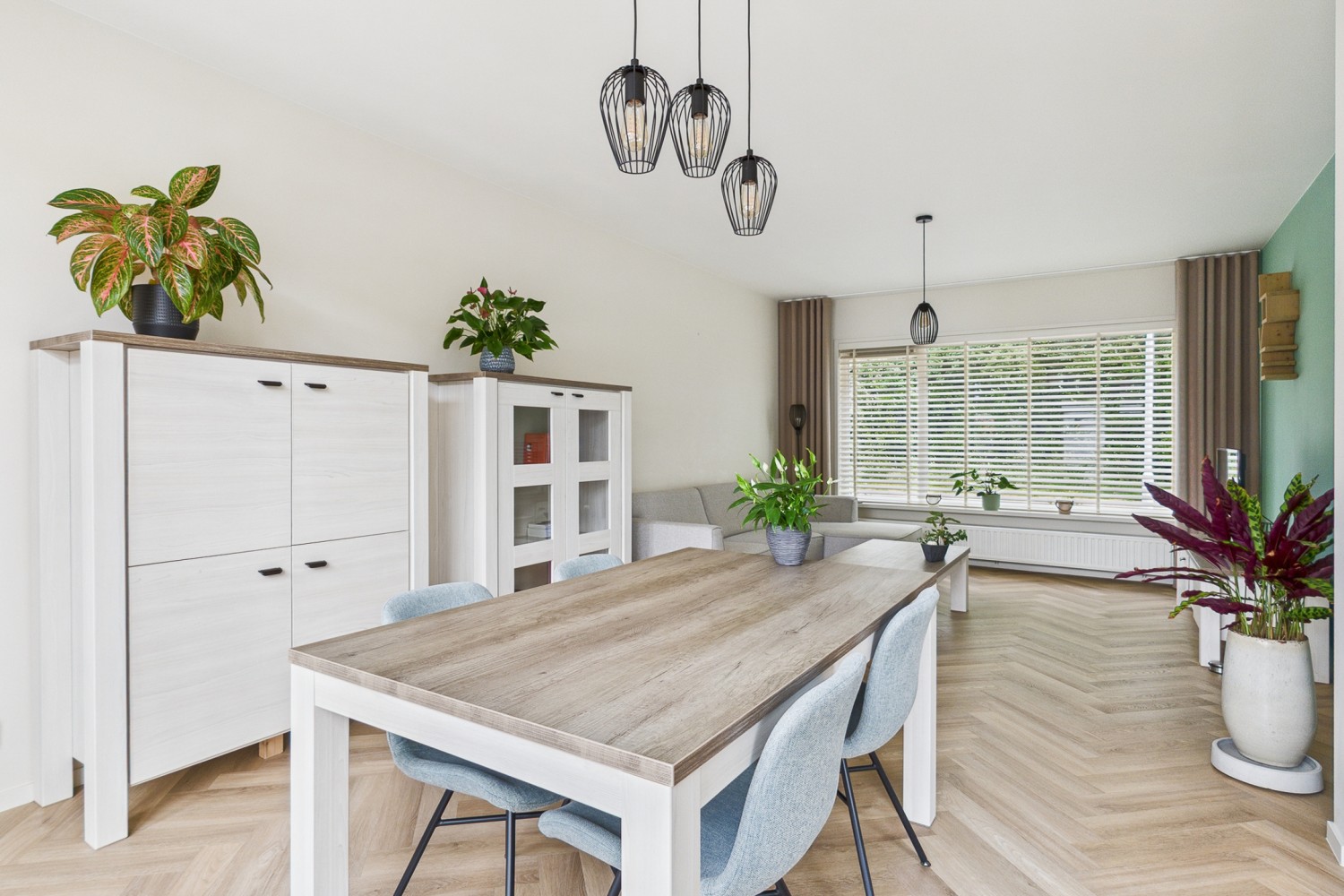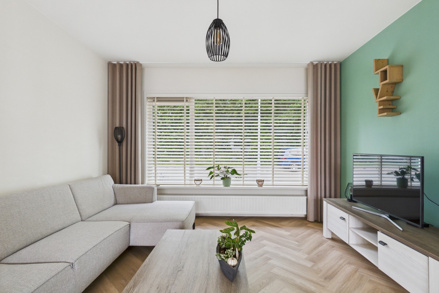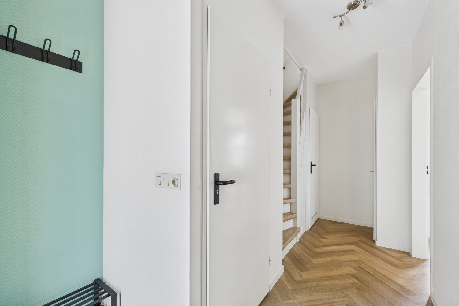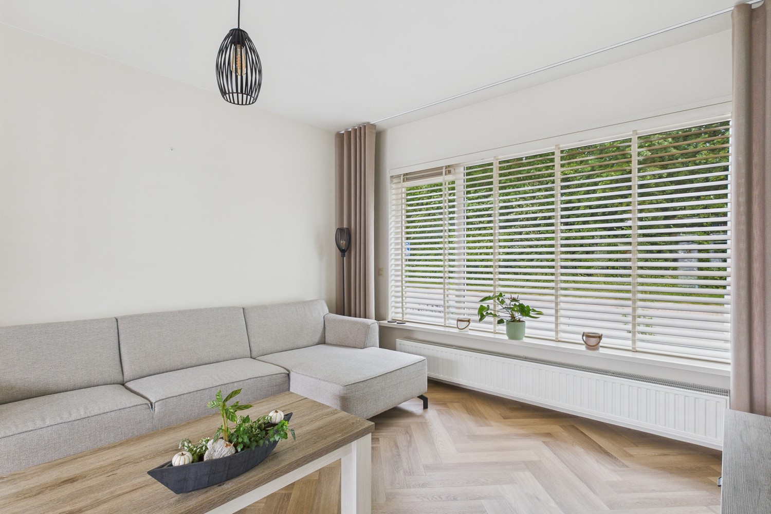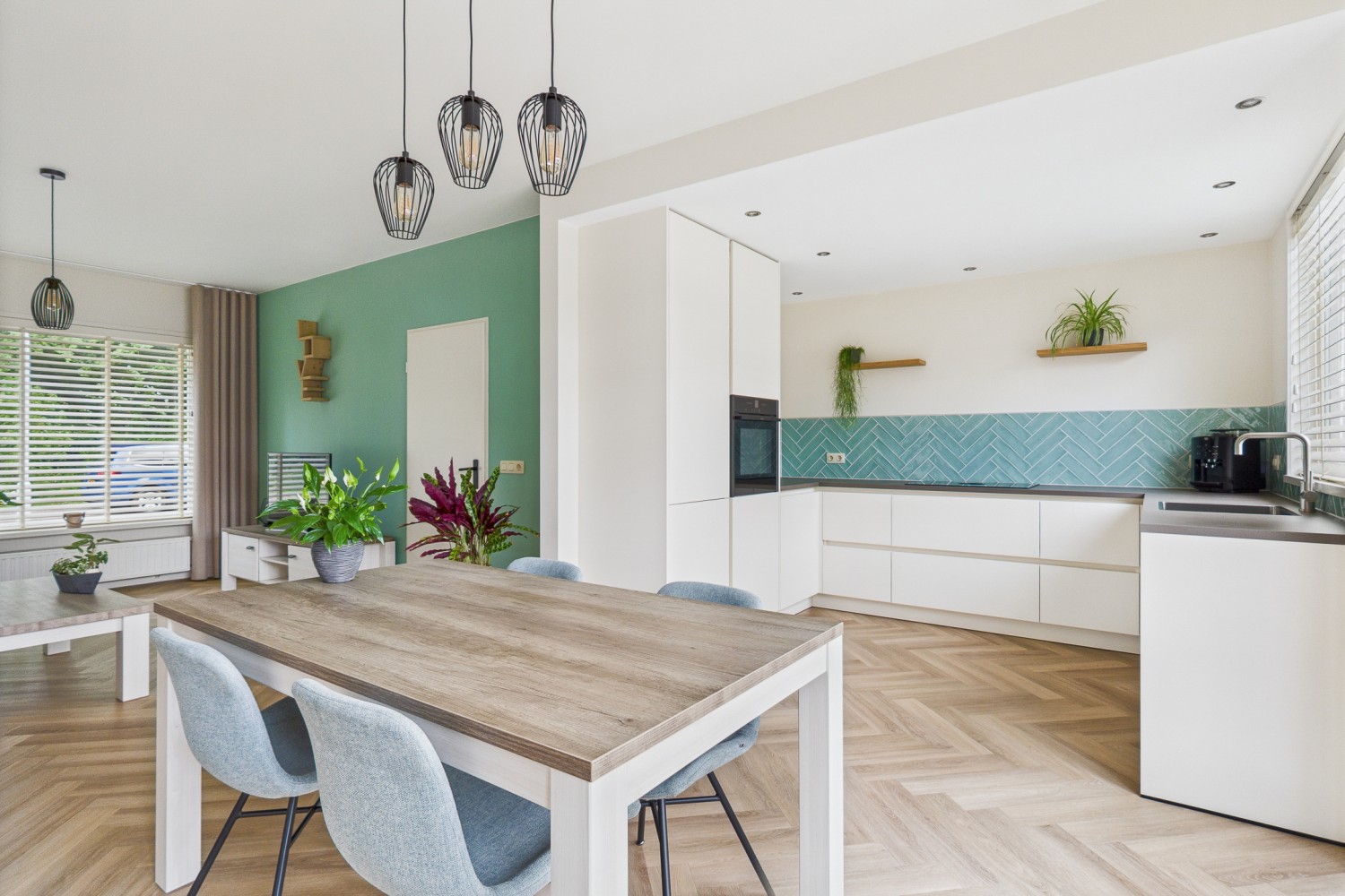 Je komt de woning binnen in de hal met garderobenis, toilet, meterkast en trapopgang naar de verdieping. Vervolgens stap je de ruime doorzonwoonkamer binnen, waar de prachtige visgraatvloer direct in het oog springt. De open keuken, vernieuwd in 2022, is modern en stijlvol en uitgerust met alle denkbare inbouwapparatuur. Via de openslaande tuindeuren loop je zo de achtertuin in, waar je kunt genieten van zon en rust.