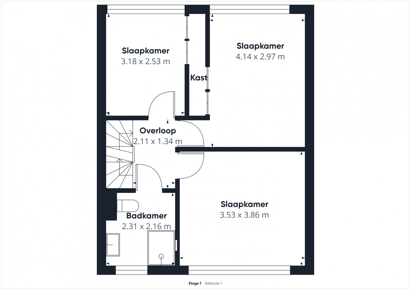 Op de eerste verdieping bevindt zich de overloop met vaste trap naar de zolder. Hier zijn 3 ruime slaapkamers, die stuk voor stuk praktisch in te delen zijn. De moderne badkamer is voorzien van een inloopdouche, wastafel met meubel en een tweede toilet.