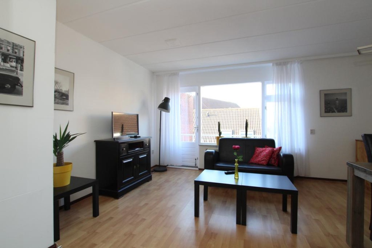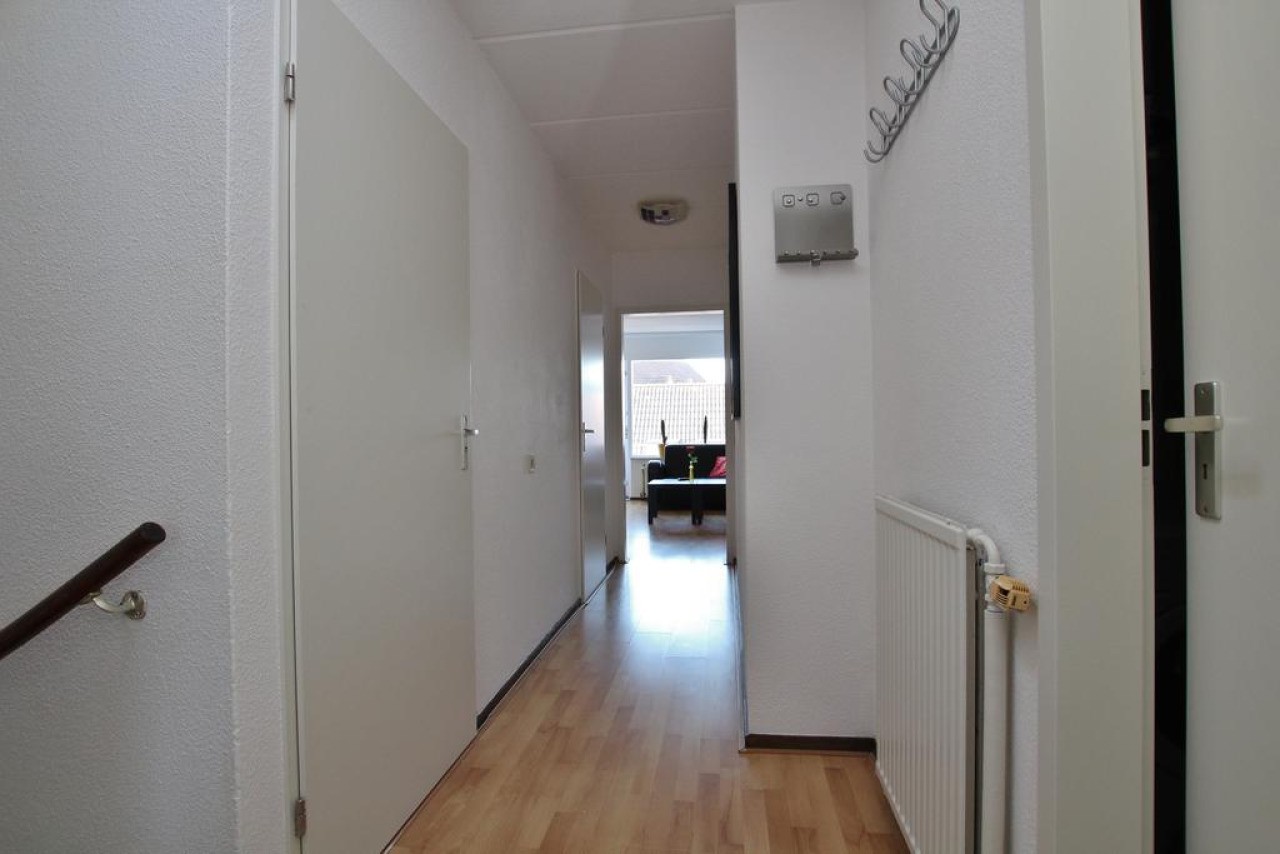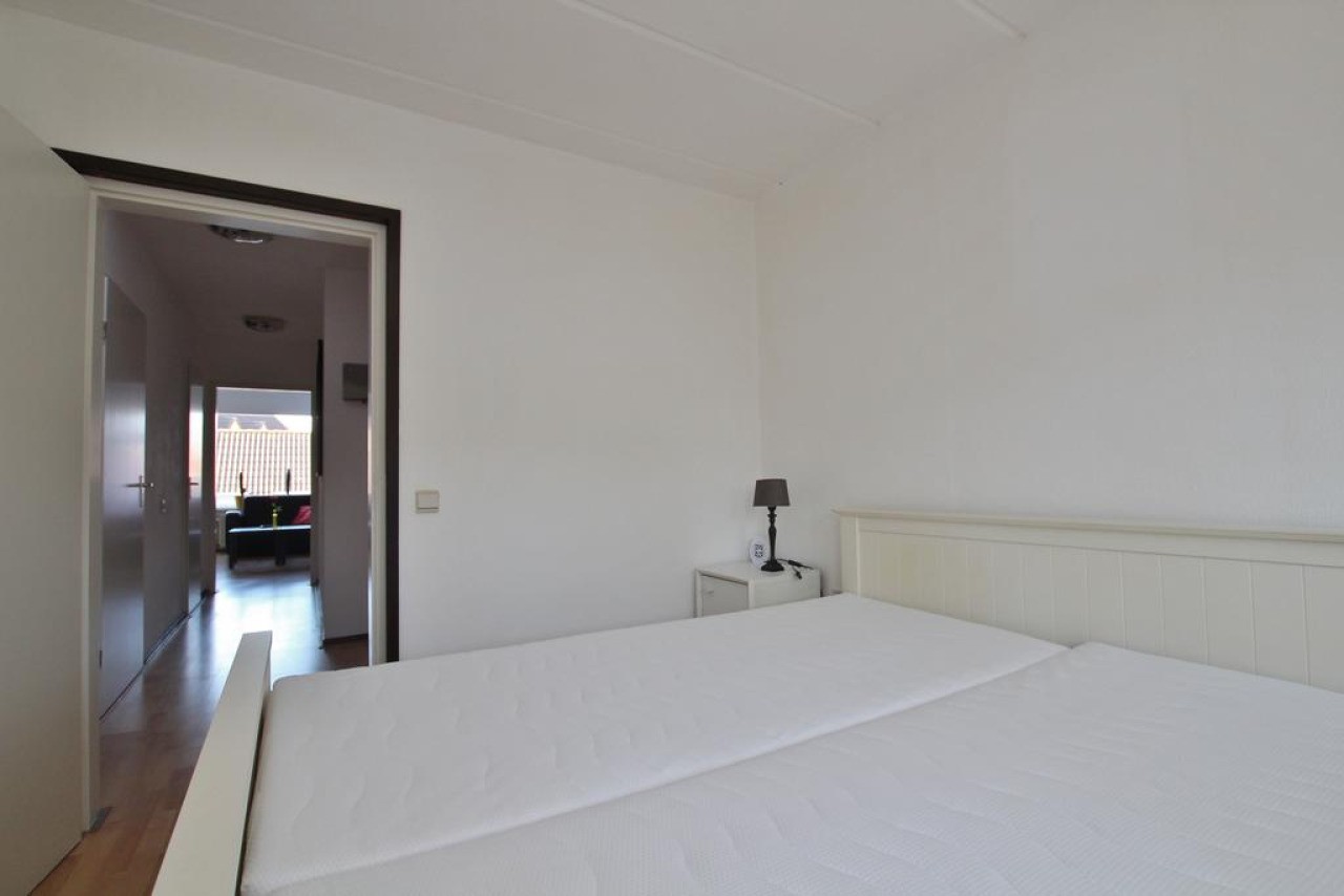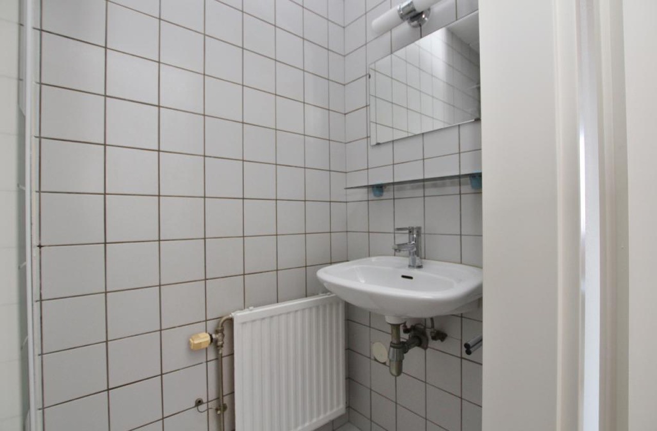 Hal, toilet met fonteintje, wasruimte, volledig betegelde badkamer met douche en wastafel, slaapkamer met 2-persoonsbed, lichte woonkamer met toegang tot balkon, half open keuken met net keukenblok voorzien van een 4- pits gasstel, afzuigkap, oven, koelkast en vriezer.