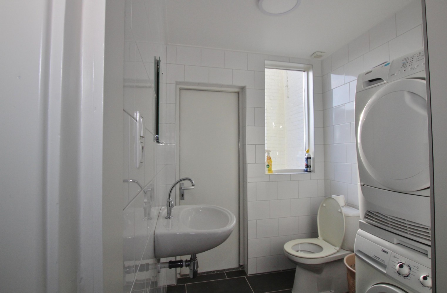 Het appartement betreed je via de hal met trap naar 1e verdieping. Via de overloop kom je in een ruime woonkamer met erker en schuifpui waar ook het balkon aan grenst, het balkon kan ook via de witgoedruimte betreden worden die ook voorzien is van een extra toilet. Aan de voorzijde van het appartement is de keuken met een net keukenblok voorzien van een inductie kookplaat met afzuiging, spoelbak, vaatwasmachine en koelvriescombinatie.