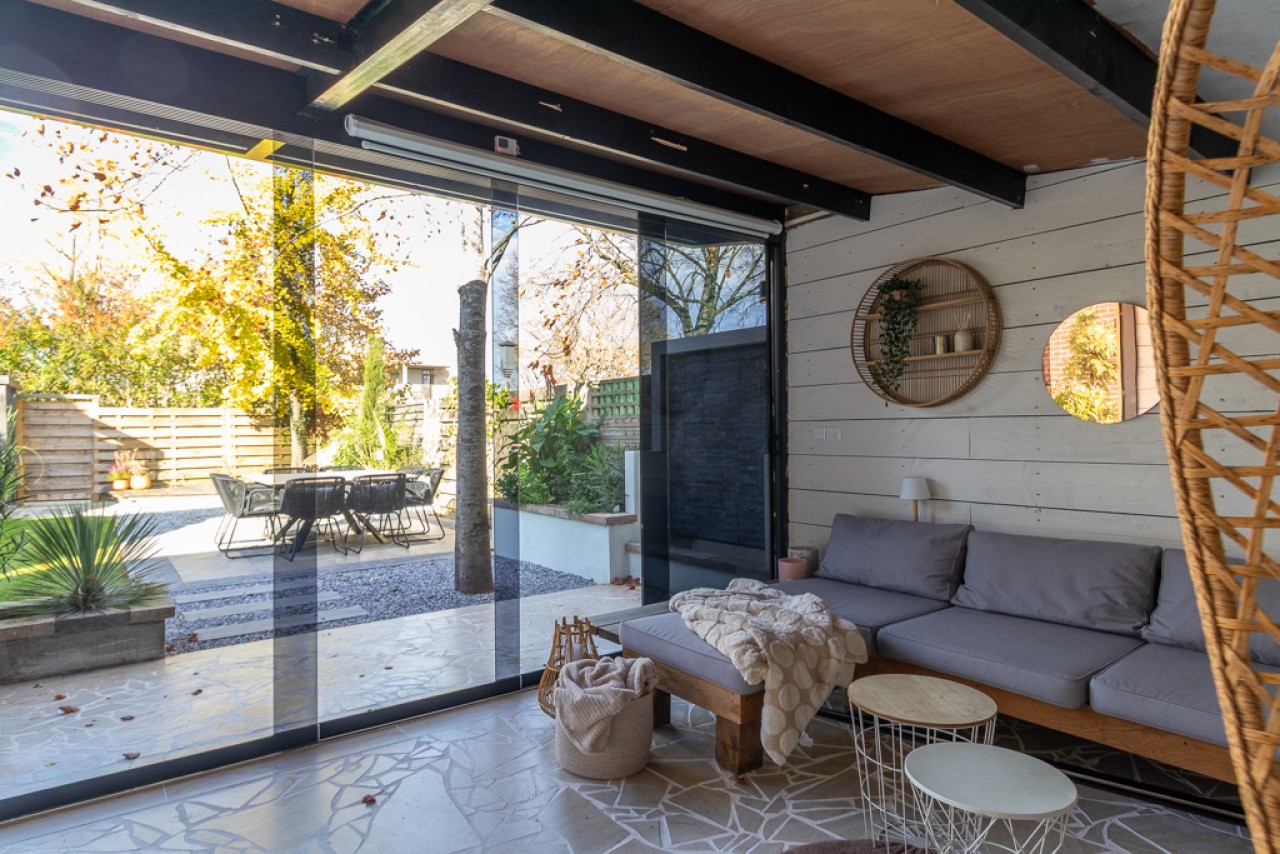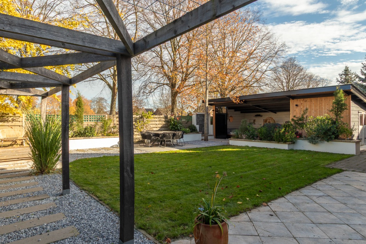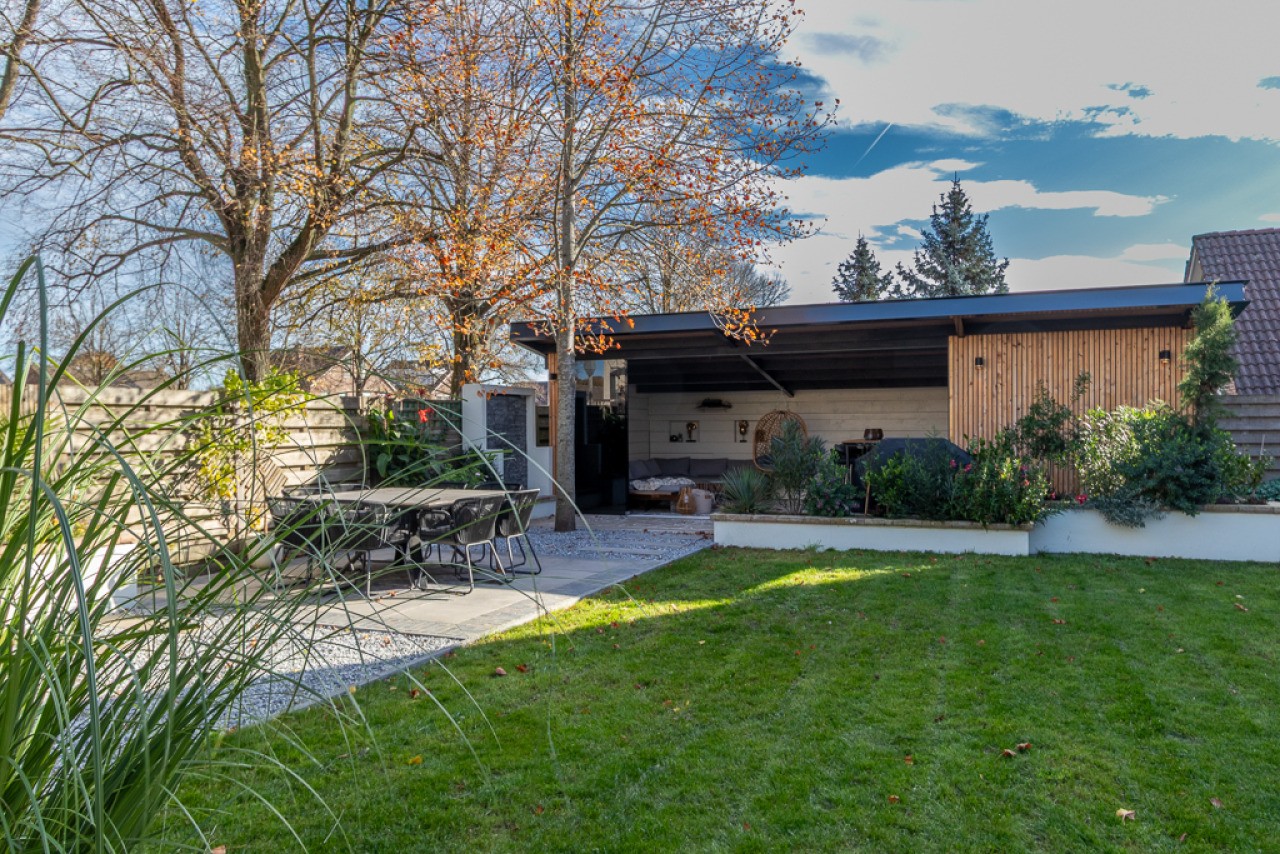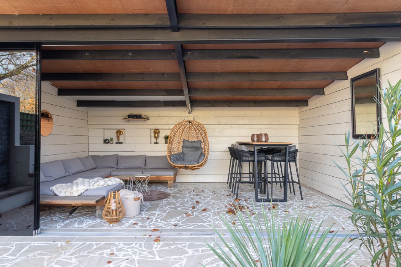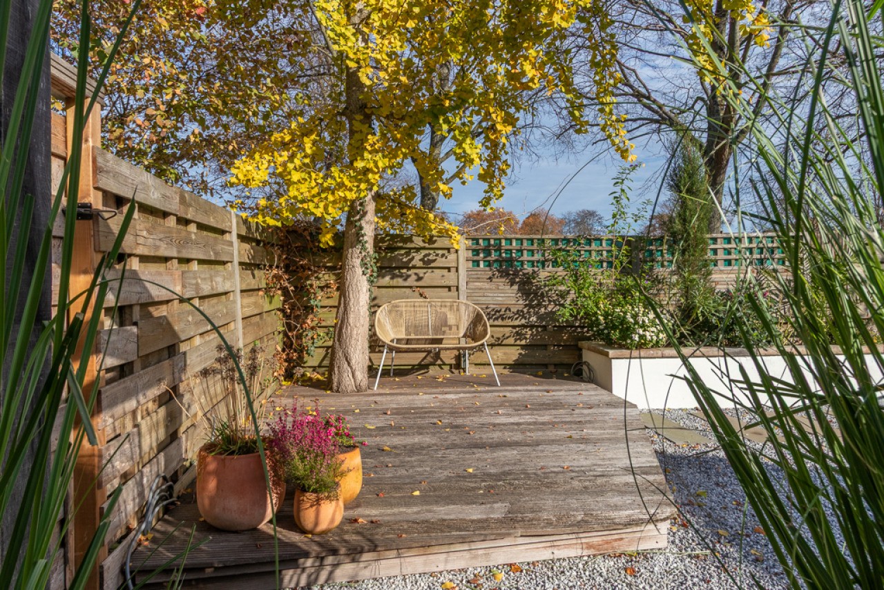 De achtertuin voelt als een verlenging van het huis. Met een terras, groen